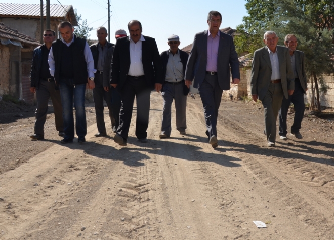 Köy konağında ki konuşmaların ardından başkan Gürcan Güven ve muhtar Mustafa Karaaslan ile mahalle sakinleri kilit parke yapılacak yolları ve düğün salonu olmasını istedikleri yer ile meyve alım yerini incelediler.