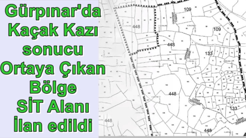 Gürpınar Mahallesinde bir tarlada yapılan izinsiz kazı üzerine başlatılan inceleme sonucunda, sekiz parsel daha III. Derece Arkeolojik Sit Alanı olarak tescil edildi.
