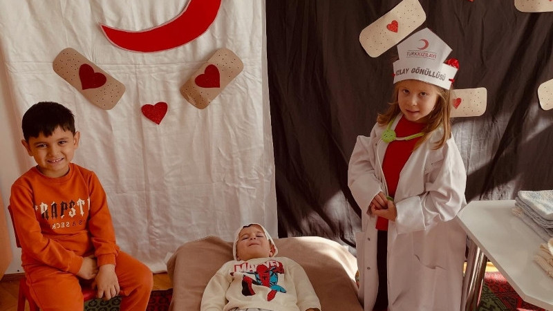Öğretmenler eşliğinde yapılan etkinlik ile ilgili olarak okul idaresinden yapılan bilgilendirmede “Bugün sınıfımızda ‘Kızılay’ konulu bir drama etkinliği gerçekleştirdik. Çocuklarımız, yardımlaşmanın, dayanışmanın ve paylaşmanın önemini eğlenceli bir şekilde keşfettiler. Kızılay’ın iyilik dolu hikayesiyle empati kurdular ve küçük kalpleriyle büyük değerleri yaşadılar” ifadelerine yer verildi.
